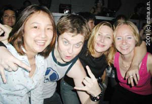 特製特大GFバナーの後ろで談笑するツバキアンナさんとTSOUSIE。VIPの顔ぶれも豪華ですな〜☆