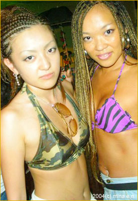 編み編みヘアで夏モード全開!ひときわ目立ってたふたり組。 思わずビキニの瞬間は?TOMOMI(L)「欲求不満のとき」YOKO(R)「ナンパされたいとき」(!)