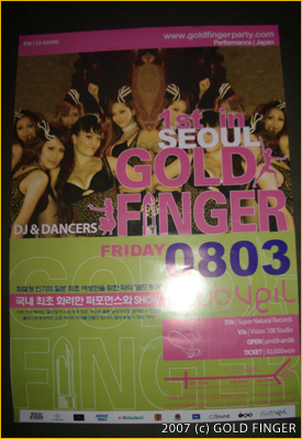 GF初の海外ツアーは日本でいえば青山のような立地にあるバブリーなNEWクラブ"Veil“で開催されました。入場料も30,000won 、VIPルームでは日本より高い値段のシャンパンがバンバン開けられ大賑わい!数週間前からGFポスターやフライヤーでPRバッチリ!期待大な空気の中、はじめてみるGFポールダンスショーにはみんなビックリ!大興奮!!!GFメンバーは総勢8名 DJ=JURI, CHII GF BOND POLEDANCERS= MAKI, KAYO, MASAYO,ASAMI, CHLOE & GF PRODUCER=D.K.C. @club Veil
